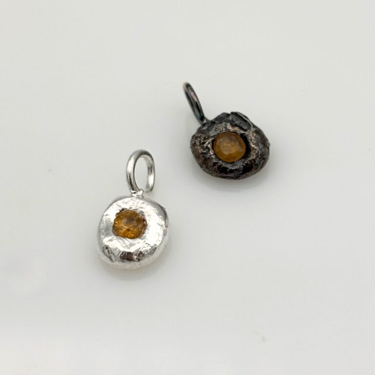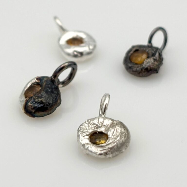 ➤ In this nugget, you will embed a natural sapphire of approximately 3 mm, carefully pressed in with tweezers while the silver is still liquid – be careful of thermal shock, so the stone remains intact!
